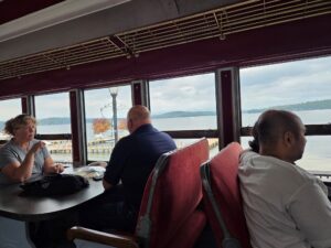 The Granite Staters Chapter of the Family RV Association held its annual Fall Rally the first weekend of September. The rally was held at the Twin Tamarack Family Campground in New Hampton, NH. We occupied fifteen (15) sites, with a number of guests from the Green Mountain Chapter. Bill Newton, the Northeast Area President was also present. Rally participants began arriving on Thursday afternoon. Friday afternoon a number of members went over to Lake Winnipesaukee for a ride around the lake aboard the Sophie C. It is the boat that delivers US Mail to the islands around the lake. Pizza and a bonfire finished off the evening. Saturday morning was our Chapter business meeting where our existing slate of officers were reelected. About half the crowd then headed to the Winnipesaukee Scenic Railroad for an excursion aboard old rail cars pulled by a steam locomotive. As the skies opened up, we were in Hart’s Turkey Farm for a large group dinner. Again, we finished the night around the bonfire. Thank you to Rally Master Rich Morgan for an exciting time.